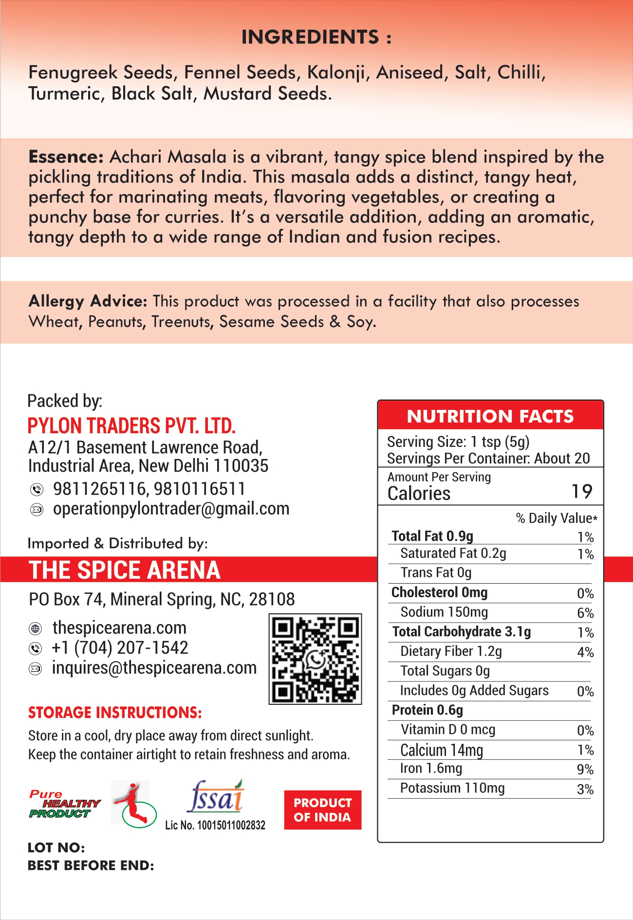 Achari Masala is a vibrant, tangy spice blend inspired by the pickling traditions of India. This masala adds a distinct, tangy heat, perfect for marinating meats, flavoring vegetables, or creating a punchy base for curries. Itβs a versatile addition, adding an aromatic, tangy depth to a wide range of Indian and fusion recipes.